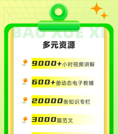 这一个非常受大家喜欢的学习软件当中,主要就是能够在线学习各种各样的知识,里面主要就是通过视频学习的方式,教给大家正确的刷题秘诀。配备多元的资源,不仅有10万多个作文素材,同时还有3000多个范文,这样在学习的时候就能够通过里边的资源来进行学习,主要就是针对高中、初中、小学的青少年而设置的。