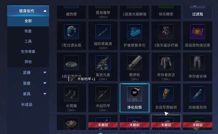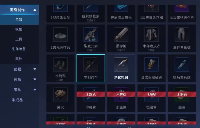 在主线当中大家就可以看到相关的任务,想要解锁这部分的玩法,玩家首先是需要去制作一个鱼竿以及鱼饵的,在拥有这两个装备之后大家才可以在上面开始钓鱼,想要制作的玩家可以打开自己的随身制作页面来获取鱼饵以及鱼竿,一开始大家就用新手级别的鱼饵就可以了。