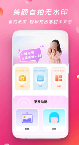 主要还是美颜拍摄的功能,通过自带调节的滤镜可以一键为照片中的人物添加上自然的美颜效果,大家也可以根据自己的需求去调节美化强度等级,更是能够选择不同的模板进行一键排版合成。