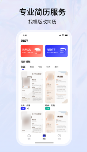 这是一款比较综合性的职场打工人实用工具,其中的简历模块中就带有自动优化以及代写的服务,大家可以在其中选择一些自己比较喜欢的样式进行编辑,交给系统来进行润色修改,还是比较不错的。