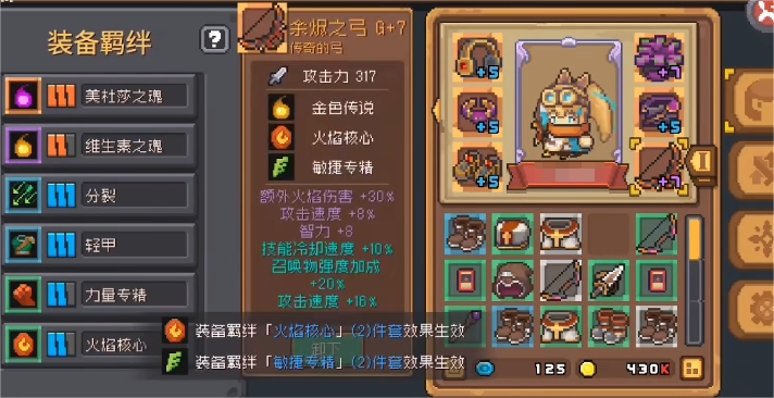 那么关于“元气骑士前传弓箭需要刷什么”的内容到这里就全部结束了,这些羁绊的效果对于弓箭来说都是十分不错的,能够显著加强它的伤害与作用,所以有条件的话一定要尝试把它刷出来哦!