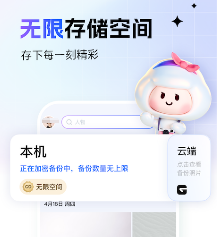 作为一个下载量比较高的相册软件,它不仅拥有着无限空间永久储存这样的功能,可以让手机当中的相片空间得到清理,告别因为手机相册多而出现内存不足,卡顿的问题。拥有着无限的储存空间,在储存的时候,不管手机的照片涉及到什么样的内容,都可以保护照片的安全,在寻找照片的时候,也能通过智能搜索的方式来快速的找到使用,非常的便捷。