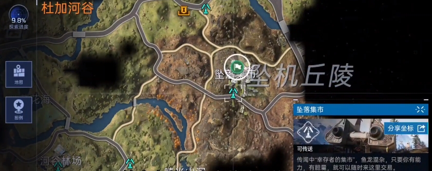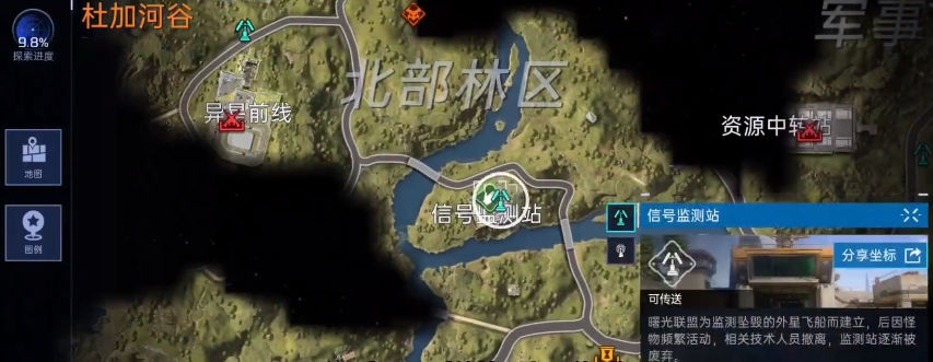 第二个碎片是在信号监测站附近,大家可以在周边看到一个瀑布,在上面大家就可以找到第二个碎片啦,大家可以往坐标点为(844、1403)的位置查看一下,最后一个碎片在北部林区上面,大家可以在林区上方的河边找找看,可能会出现在(899、1854)的位置哦。