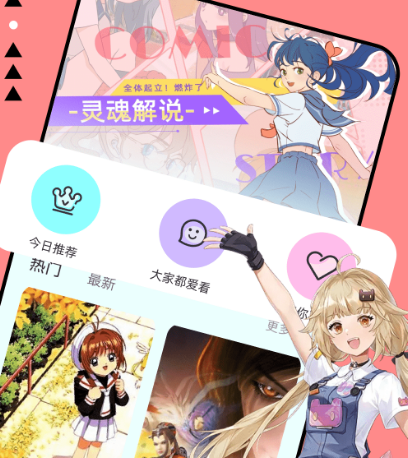 热度较高的漫画平台,虽然看似这款软件比较小众,但详细了解之后会发现其中有丰富精彩的动漫内容解说以及好看的动漫推荐,专门为动漫迷们进行打造享受动漫带来的乐趣。如果有足够的灵感,对个人喜欢的动漫人物特别感兴趣,也可使用这款软件进行DIY,一键生成漫画照片,满足对漫画的所有需求。