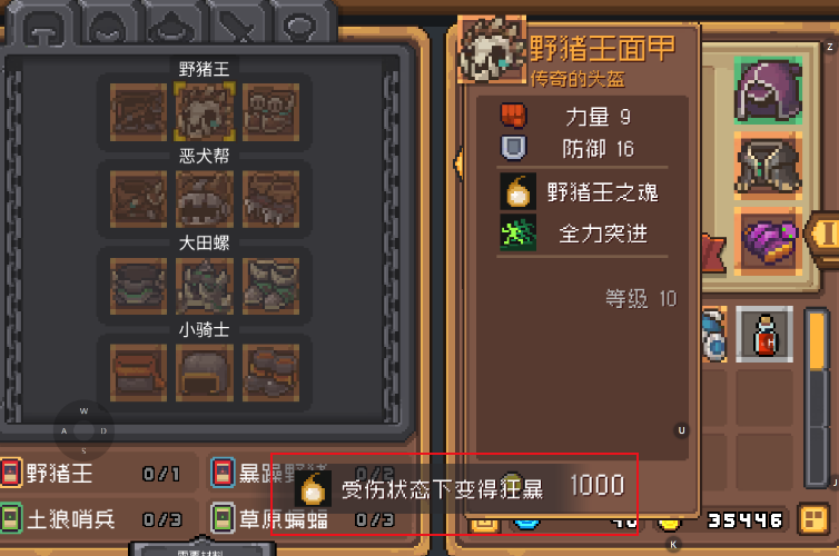 而野猪王之魂的话,主要是因为这个装备的属性全部都是防御系的,而激活的羁绊可以大幅度的提升领主的伤害,在被敌人攻击的时候是可以直接变成狂暴状态的,在加上【力量】点数,达到500点的时候,会激活力量专精,大幅度提升生命值!