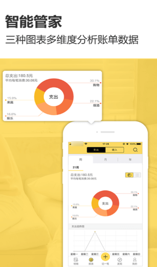 可以为我们每天的支出和收入进行智能统计,也支持自己选择时间阶段来进行查看。软件还会通过图表让我们直观看到收支和预算的比较。