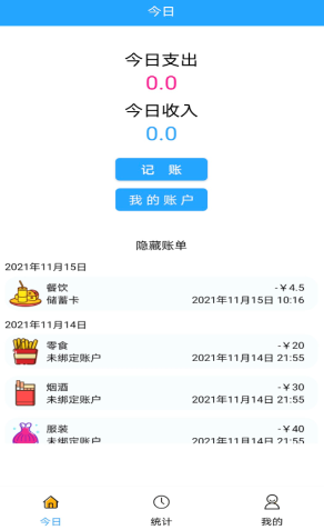 虽然界面看起来比较简陋但是功能还是比较不错的,可以实时看到当日的收支情况,更是带有隐藏账单的功能,私密性满满。