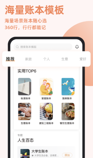 老牌的一款记账工具,自带有海量的账本模版,包括有比较常用的旅游、学习、工作、人情账本等,让我们把生活收支单独隔出来进行统计。