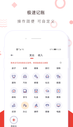 带有简易记录模式,选择类别和金额之后就可以快速完成记账,带有的种类比较齐全,还可以根据自己的需求来进行定制。