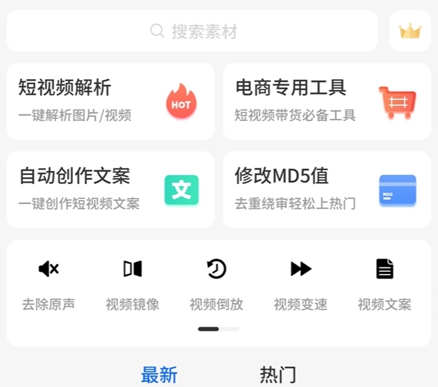 作为自媒体创作必备的素材类APP之一,在里面大家能进行趣味短视频的制作,同时还有大量无水印视频素材给到大家,包括各类炫酷特效、音效素材等,也能去选择使用,通过该软件就可轻松的一键获取。