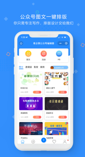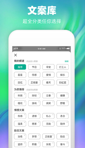 带有多种不同的类型和频道供大家选择,每天都会更新一些有趣的文案供大家欣赏。这款软件也带有强大的图文编辑模块,能够自由插入图片或者是多媒体文件并且一键导出到公众号中。