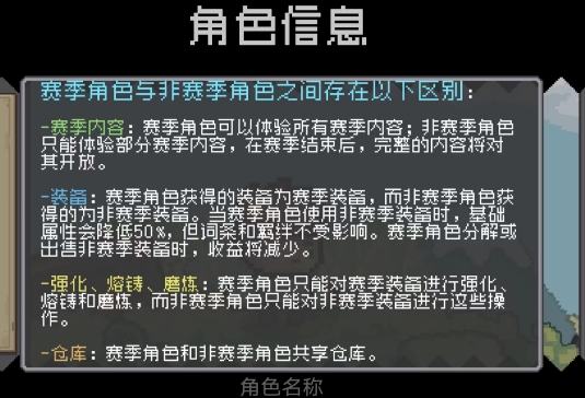 赛季角色一般指的是当前赛季所创建的角色,这个角色在最初赛季中你看不到相关的影响,不过在赛季结束后它会变成非赛季角色,那么那个时候你的这个角色就会被打上一层严重的debuff,debuff主要是削弱他装备一半的属性。