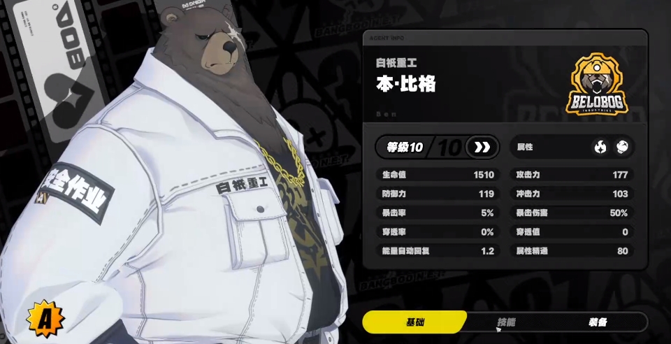 第三个本,操作有瑕疵的玩家可以利用本的能力来增强生存,但是使用本需要大家注意他的输出不高,就连普攻都比其他的角色少一段,但是有防御的时候最高能够达到80%的减伤。