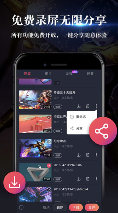 高清的录制给你带来清晰的画面,所有的功能都是免费使用的,并且软件支持2d级高清的录制操作,还可以将手机内部声音录制进来,浮窗的模式操作起来十分简单。