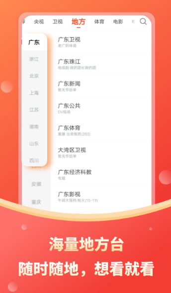 用它来在手机上看电视直播,所有电视频道都是免费观看的,在线内容想看就看,追剧或者是看综艺都可以,除了卫视外还能搜索到地方台,这样就可以看到更本土化的节目了。