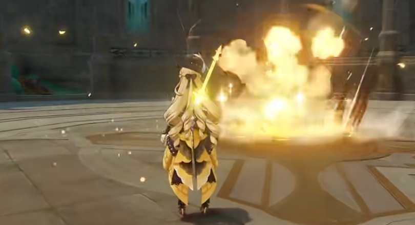 如果是下落攻击的话是可以利用高处造成这样的攻击,只要是下落过程中经过途径当中的敌人都会受到一定的伤害,在落地之后带来的也不是单人伤害,而是一个范围伤害,如果是副本里面有这个场景帮助的话,大家可以用这个技能来清小怪,其次就是在典仪式晶火这个技能上面其实主要就是带来的晶片反应效果。