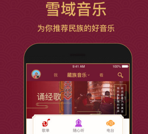 这是一款非常适合藏族同胞以及热爱听藏歌人群打造的软件,清晰简洁的界面,为用户带来舒适的听歌体验,拥有各种影视金曲以及藏族弹唱。