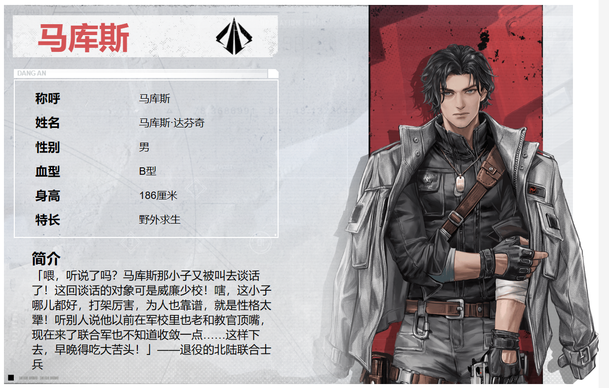马库斯:马库斯是游戏中排行第四的角色,他是一个拥有坚固防御和牵制能力的战士。他的技能可以能有效的拉扯敌机注意力并减少他们的输出,同时也可以造成一定的反弹伤害。他的机甲是马库斯机甲,它可以增加马库斯的生命值和护甲。而他的专属技能实在移动三格后就能再次进行攻击一次,每回合仅限一次,追击能力十分强劲。