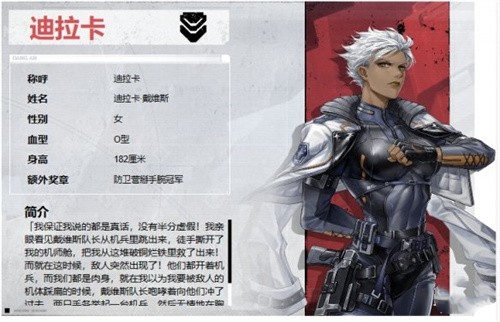 迪拉卡是一位守护者,擅长使用大盾进行防御和援护,他的神经驱动可以让他在受到攻击时发动援护防御和反击,或者在遭受过量伤害时触发不屈,还可以提高他的耐久值和修理效果,使他能够更坚定地守护自己的队友。迪拉卡的背景故事是这样的: