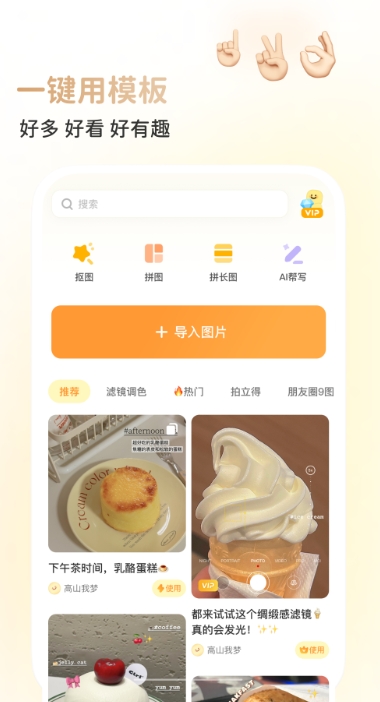 这是一款时尚又实用的相机应用,拍照效果清晰得像黄油一样滑溜。里面融入了大量潮流元素,让你的照片充满活力。更厉害的是,它自带美颜功能,可以自动调节美颜强度,让你的照片看起来更加自然,就像用黄油涂抹过一样顺滑。除此之外,它还准备了大批免费的贴纸和文字,让你能够随心所欲地创作出独具特色的照片。无论是记录生活点滴,还是分享旅行、美食、时尚等美好瞬间,都能让你轻松搞定。
