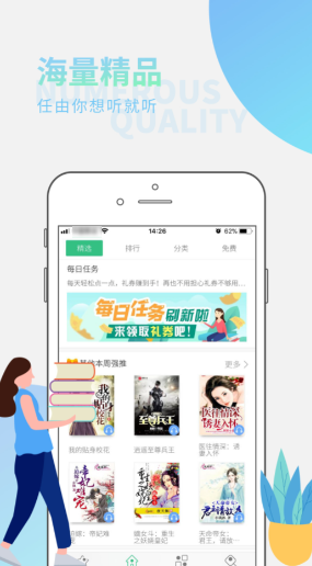 带有大量的精品内容,而且贴心地为我们进行了比较细致的分类,能够根据自己的爱好去选择。而且同一部作品还可以选择不同的主播音源来进行收听,让听书变得更加惬意。