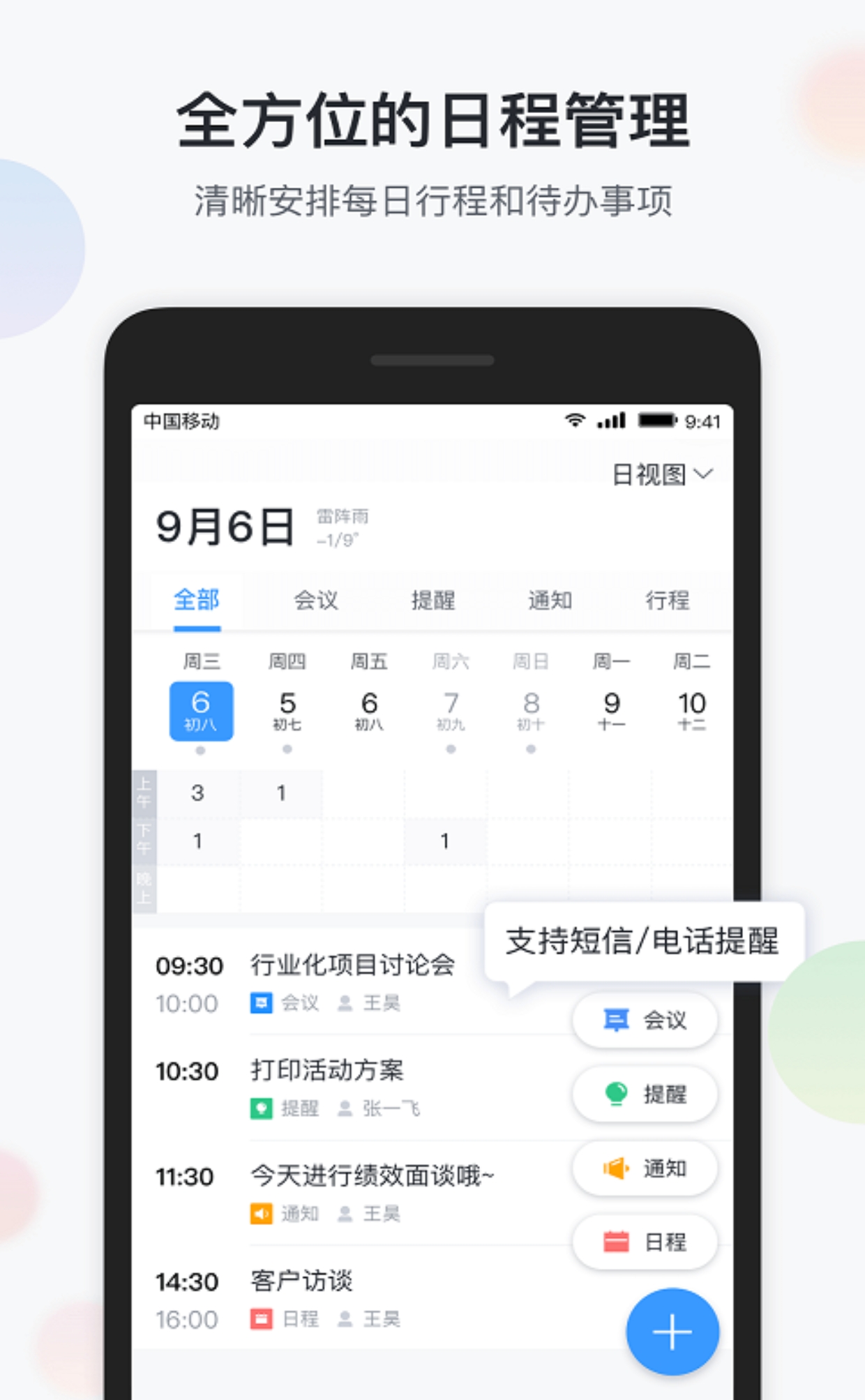 5.《钉钉》钉钉是一款免费的公司管理软件,它不仅支持多人同时在线沟通、文件共享、任务分配等功能,还可以实现审批流程的自动化和智能化。此外,钉钉还支持多端同步和自定义插件的开发和应用,让企业可以根据自身需求进行定制化开发。