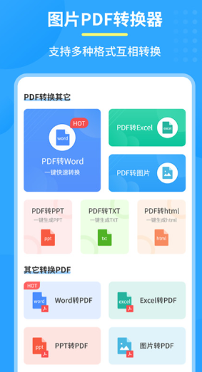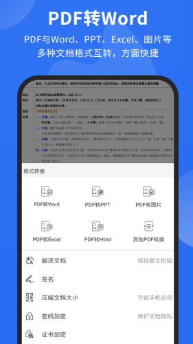 可以快速将pdf文件转化为word等可编辑格式,软件还额外加入了对图片文件的优化,支持多种不同格式和尺寸,可以帮助我们在多种类型文件中进行不影响版面的互相切换。