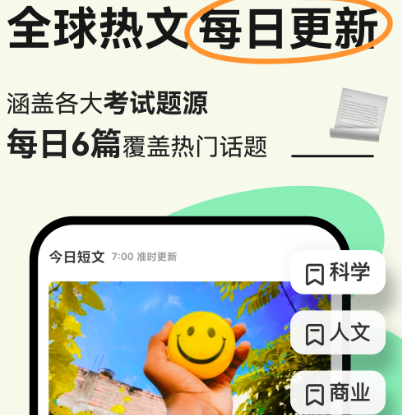 正在学英语的你这款阅读软件不能错过原汁原味阅读体验,全球热文每日更新,涵盖各大考试题源,每日6篇覆盖热门话题,有趣的英语短文,让你学习英语时不再枯燥。
