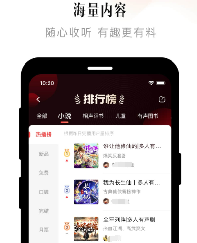 清晨听新闻,深夜听DJ,这款软件满足全方位全场景需求。作为较小的电台类应用,种类齐全风格多样,相声、评书、段子、书籍小说全部包含,已经成为几亿用户的选择。
