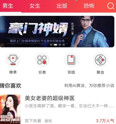 抖音旗下推出听书工具,有都市文、武侠江湖文,分类超齐全,每日精选好书,根据阅读爱好实时推送,总有一版满足你的需求。