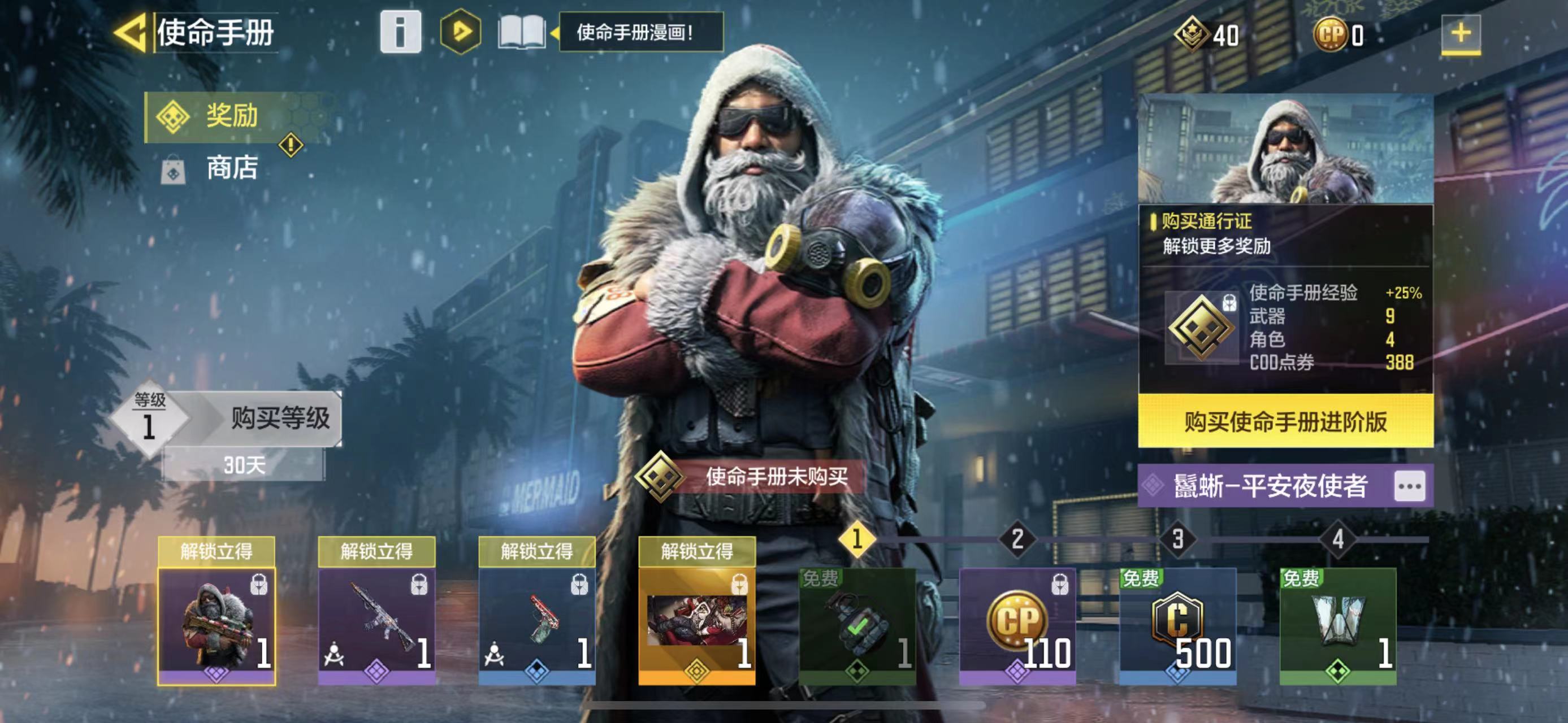 同时本次活动还会更新凛冬通行证,赠送的皮肤也是很有圣诞的味道,购买后,一级就可以解锁鼠蜴-平安夜使者皮肤!更有动态名片,专属圣诞主题【假日雪橇】;
