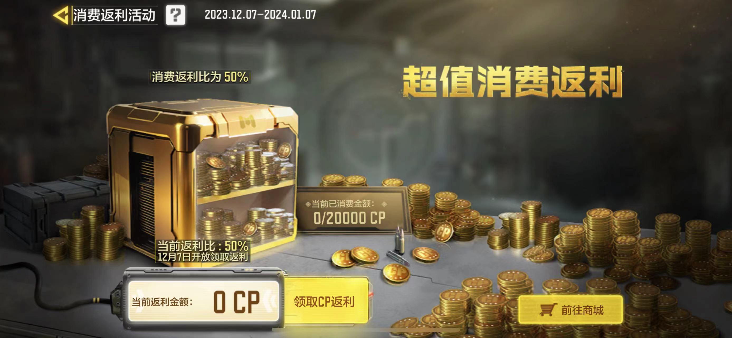 【消费返利活动】,这是会随着圣诞节活动一同上线到国服区的活动,玩家们在游戏中累计消费cod点券,就可以在活动页面中领取50%的点券返利,不过这个活动需要玩家们注意的是,这个页面的奖励只能领取一次,所以玩家们在领取之前,要考虑好,还有什么需要充值的地方没有重置的,不然领取后,后续就没有办法在进行充值了!同时这个返利也是有上限的,玩家们最高充值金额不管是多少,最终也只能返还5000点券!