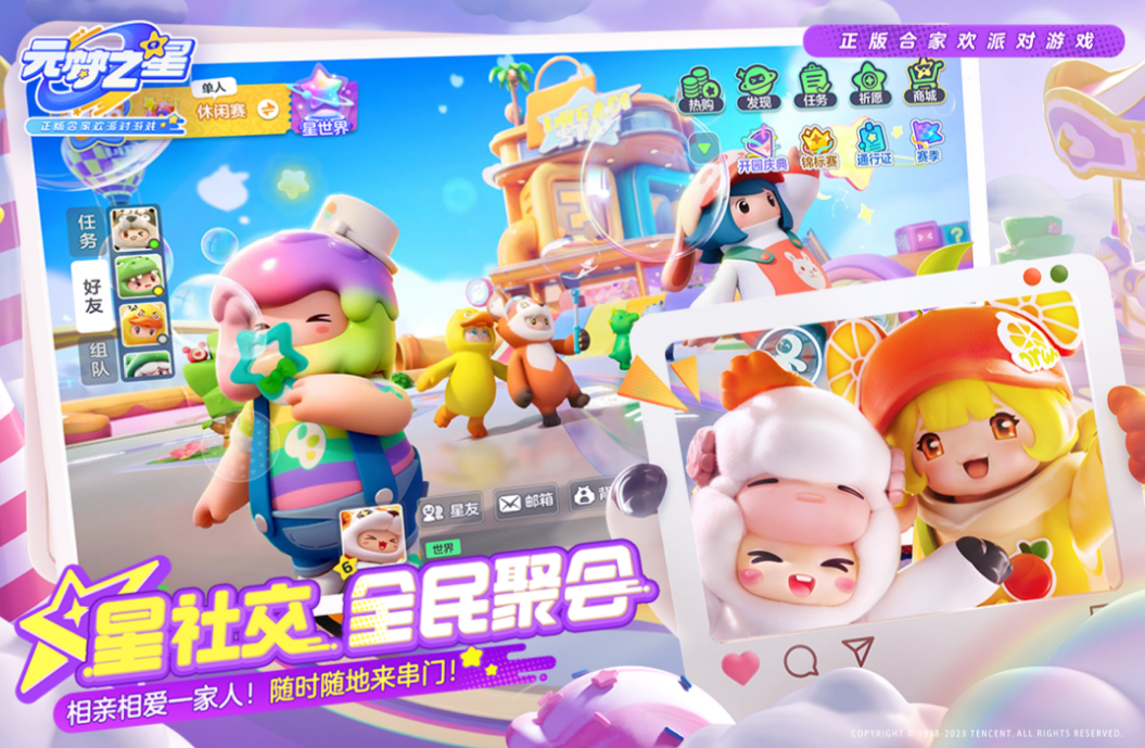 元梦之星社交玩法也十分丰富,我们在刺激的竞赛之余还可以在星梦广场上和基友们一起搭泳池轰趴、自由搏击等等,完全不必拘泥于竞赛玩法,在这里我们可以摆脱激烈的紧张对抗,还能装扮星家园、更改星宝外观,收集蠢萌表情,甚至可以将元梦之星当做一个养成装扮类游戏,当然超多的装扮、装修玩法也绝对不会让你失望,总会有一个玩法适合你!