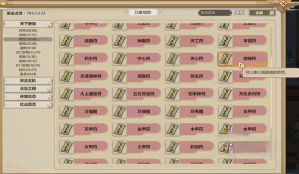 不同符咒对应的能力是不一样的,简单来讲一下游戏当中比较热门的符咒它们的作用是什么吧,比如说太阴符的符咒就是提高角色的耐热能力,太阳符则是可以不畏惧寒冷,神形符的作用是能让弟子的移速增加,想要知道其他符的具体功能,直接点击符的名字就可以查看了了。