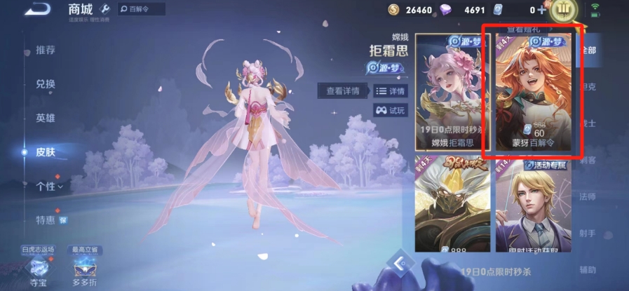 目前蒙犽的源梦皮肤“百解令”已经在商城中上架了,想要获取的话直接花费60点券去购买即可,这个价格整体来看还是非常便宜的,不过需要注意的是60点券只是限时的折扣价,过了22号之后它就会恢复888的原价了。