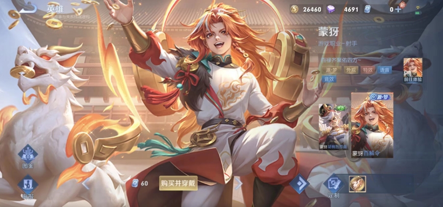 皮肤本身的立绘看上去非常的具有富贵气息,在游戏中的话也算是从模型到技能特效都给予了全面的更新,你可以在保留蒙犽基本手感的前提下,去体验到更优秀的视觉效果,而且它的回城也有着专属的特效与音效,实际体验过程中绝对会让人耳目一新!