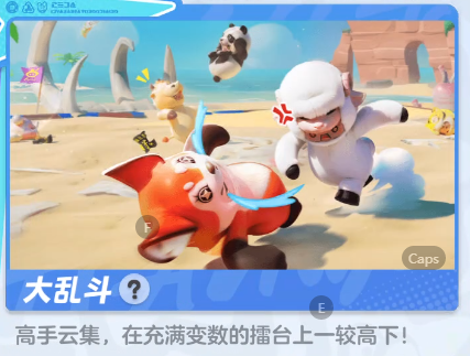 【大乱斗】这个玩法还是比较简单的,会和8名玩家共同参加大乱斗玩法,玩家们可以操控星宝来进行攻击,在地图中还会刷新一些道具,利用道具和游戏中的地形,来加速淘汰,把敌人优先丢到紫色区域的玩家就会被淘汰,玩家们需要保持良好的状态,直到比赛场上只有玩家一个人!才会获得游戏胜利哦!