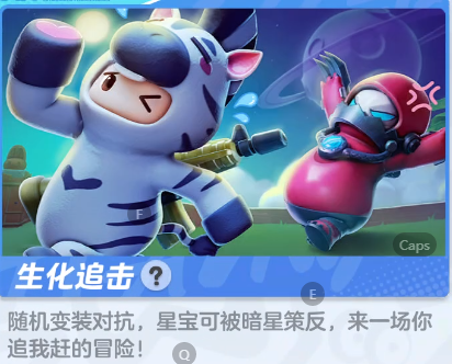 【生化追击】16人对局比赛,会分派成两个阵营,其中4明玩家作为暗星方则需要去抓捕星宝方,星宝方则是需要进行防守,在地图中会刷新一些武器,但是暗星方是拥有隐身技能的,所以这个关卡的难度还是比较高的!