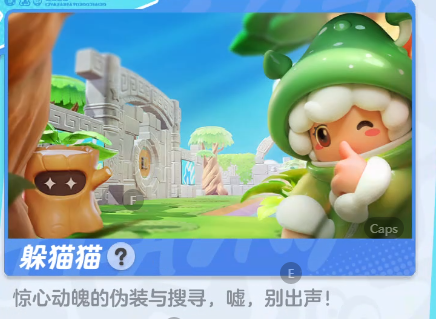 【躲猫猫】在对局中分成了两个阵营,四个抓捕者和8个伪装者,玩家们需要利用地图中刷新的道具,选择一个合适的地方来隐藏自己,而抓捕者则是可以使用技能,来进行抓捕,这个关卡是需要抓捕者把全部伪装者淘汰才可以结束游戏哦!