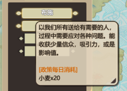 解锁相应的板块之后,玩家就需要派遣一位弟子去监管这个地方。从这里开始,玩家就需要做慈善来增加信众和吸引力和影响将本身门派的名声打出去。收获一定数量的影响值之后,玩家就可以不断的派遣弟子去入驻不同的地区不间断的收获信仰之力。