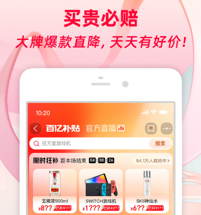 百亿补贴精选好物,涵盖丰富,品类从选品到上新,每个商品都是经过用户测评,高达98%好评才上架的,每天都会推出0元秒杀活动以及满减专区。