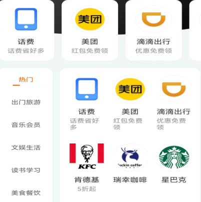 大牌折扣享不停,覆盖吃喝玩乐几十种不同的优惠,另外还包含餐饮、住宿、购物等全场景消费服务。