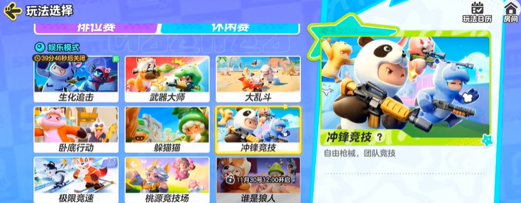 大家在游戏中可以简单的体验到和好友联机的乐趣,拥有排位赛玩法还有娱乐玩法,其中娱乐玩法的地图包含了十多种,会根据上线的时间陆续开放,大家可以期待一下!