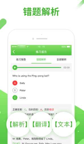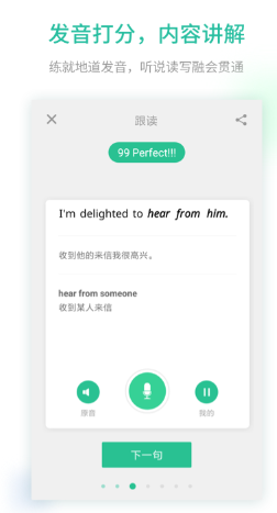 主要针对的是词汇以及口语方面的能力提升,所以对于音标、语法、发音等还是很看中的。软件会向我们提供一些训练素材,而且还会根据录音情况来进行纠错,让我们有的放矢地进行强化训练。