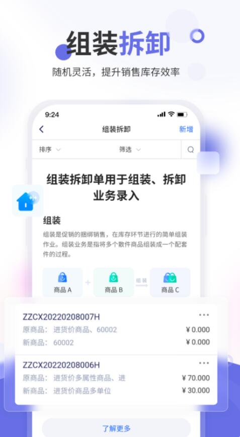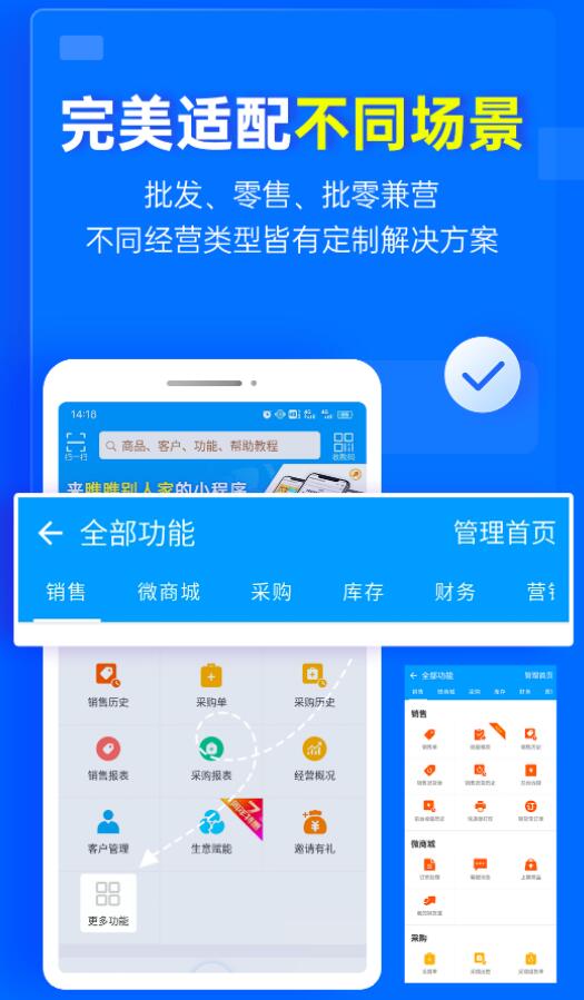 商家每次进行补货的时候,大家就可以使用软件,去记录实时的数据,确保库存内的商品始终保持充足,借助app大家还可以高效地进行盘点,系统还会生成多个图表,帮你分析近期的经营状况,新引入的小程序服务,还可以帮你扩展客源,提升店铺的知名度。