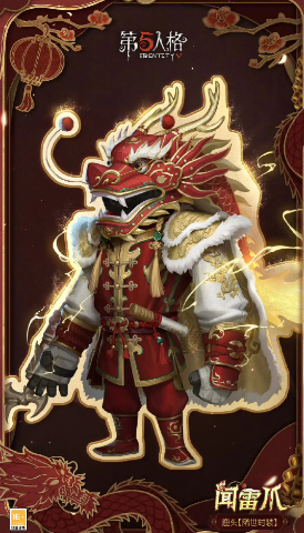2,监管者鹿头的春节限定【闻雷爪】以及随身物品【竹龙玉】,这款皮肤的特效非常的出彩,鹿头携带的面具更换成了龙头套,而且全身周围还有金色的雷电环绕,这个是随身物品带来的特效!