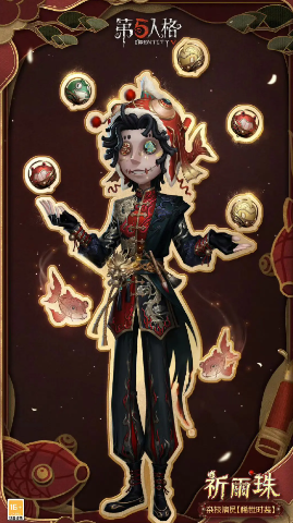 3,最后一款皮肤给到了我们的杂技演员【祈雨珠】和随身物品【灯龙影】,杂技演员这个求生者也是比较符合本次的主题的,周身有两个金鱼发出的动态效果,携带灯龙影后,释放出的技能会变成烟花效果!