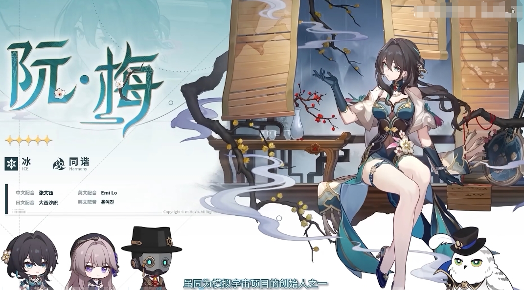 第三个角色就是同为五星的阮梅,这个角色在游戏中的形象是带有古典元素的,看起来非常的温婉,在游戏中的身份是一个科学领域的专家,而且因为是增加了古典元素,所以在武器设定上面会使用一把琵琶,使用的时候大家可以当做一个辅助类的角色使用。