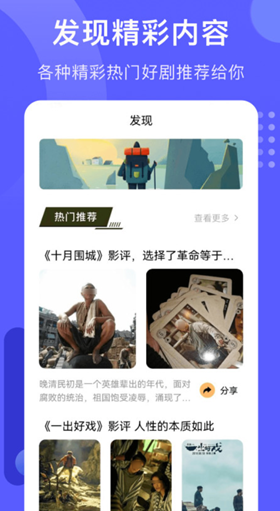 带有海量的影评内容可以让我们快速获取精彩的剧集,能够非常方便地进行播放和快进,还可以根据需要来设置多倍速播放。软件的清晰度比较高,而且不需要跳过广告,直接就能够看到正片内容。