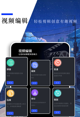 这款工具的编辑功能也很强大,除了综合剪辑模块之外,还为我们推出了便捷的拼接、变速和剪切工具箱,更是可以直接对视频进行无损压缩,从而缩小占用体积,加快分享和上传的速度。